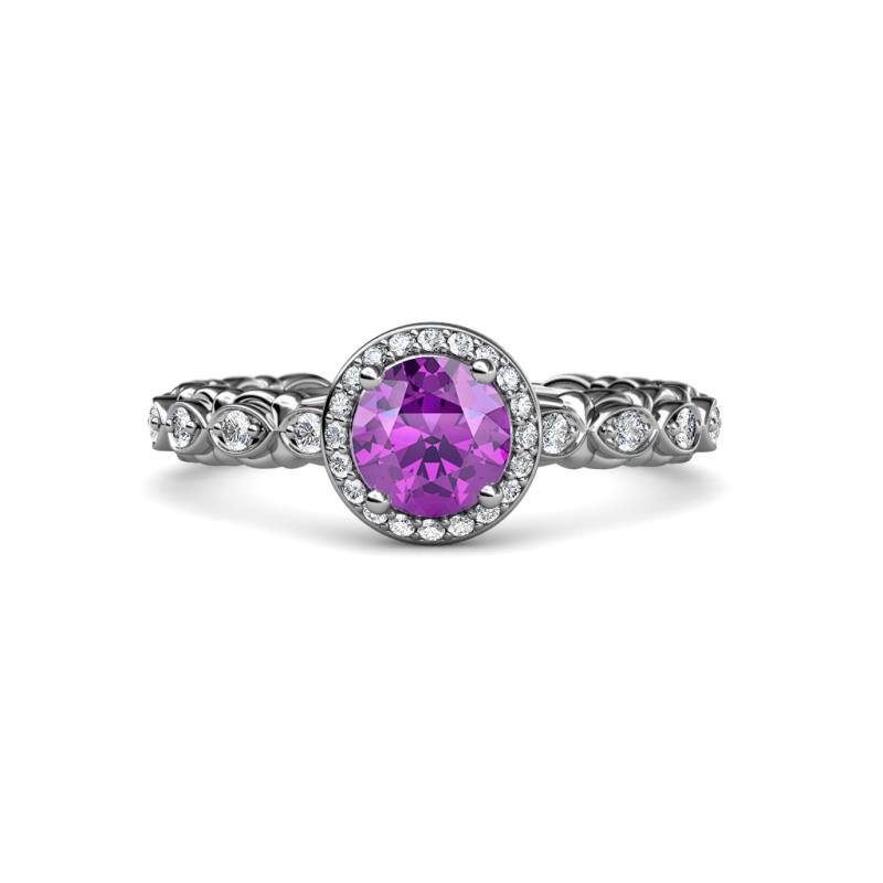 1 1/8 ct Round Amethyst and Diamond Cascading Scalloped Shank Womens Halo Engagement Ring Platinum More Details ...