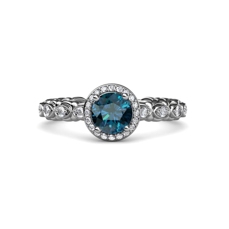 1 1/4 ct Round Blue and White Diamond Cascading Scalloped Shank Womens Halo Engagement Ring Platinum More Details ...
