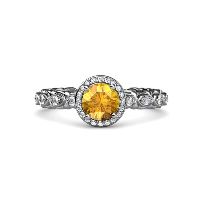 1 1/8 ct Round Citrine and Diamond Cascading Scalloped Shank Womens Halo Engagement Ring 18K White Gold More Details ...