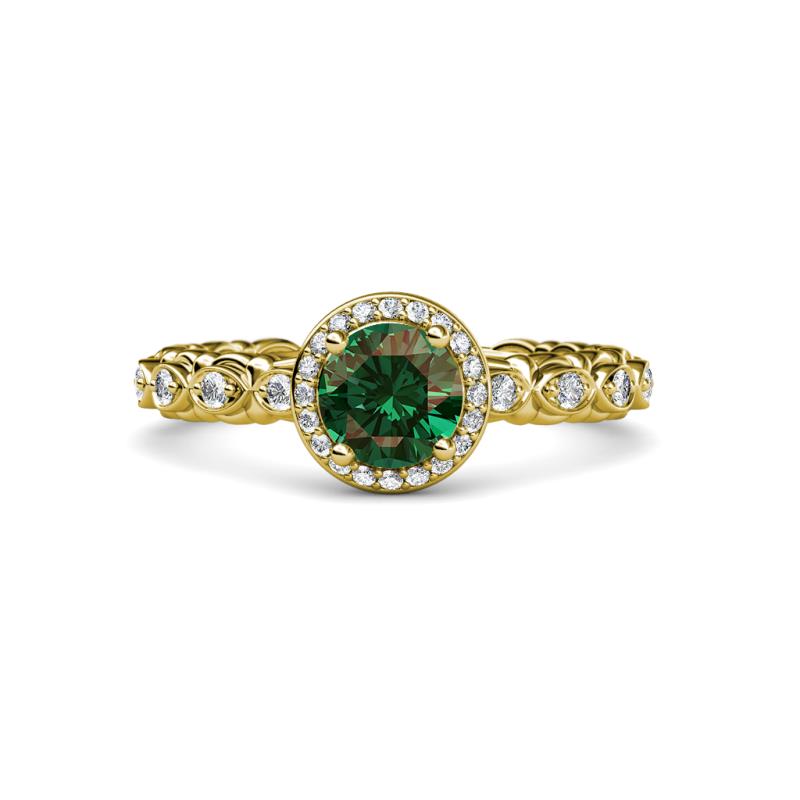 1 1/4 ct Round Diamond and Lab Created Alexandrite Cascading Scalloped Shank Womens Halo Engagement Ring 14K Yellow Gold More Details ...