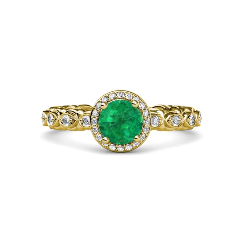 1 ct Round Emerald and Diamond Cascading Scalloped Shank Womens Halo Engagement Ring 14K Yellow Gold More Details ...