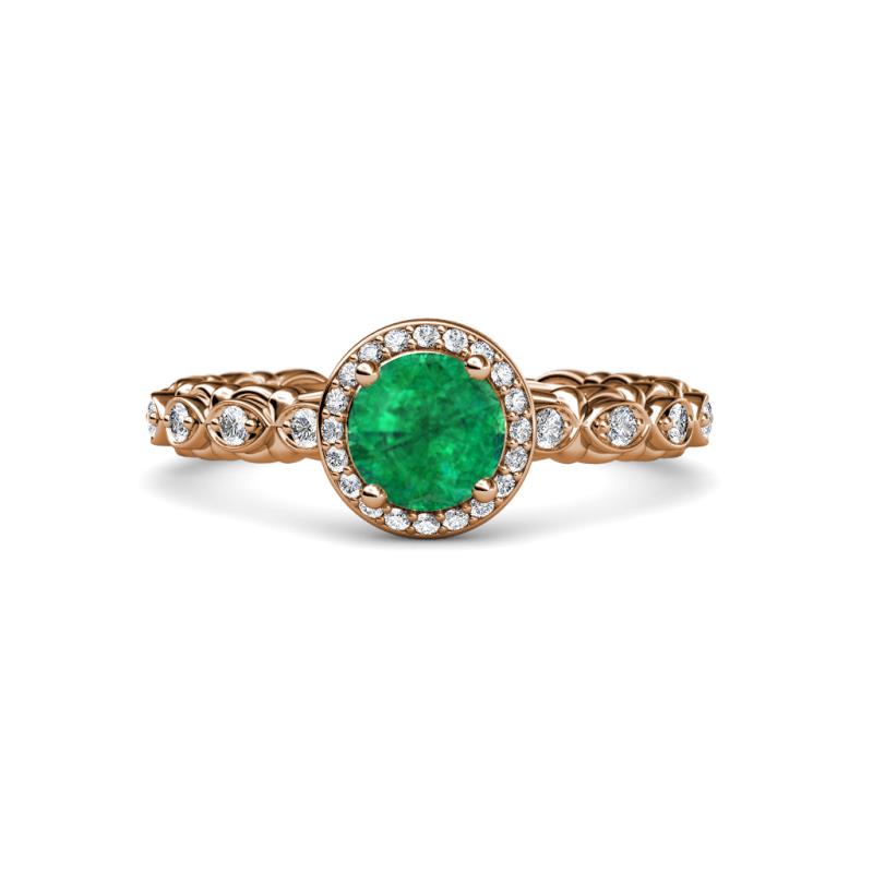 1 ct Round Emerald and Diamond Cascading Scalloped Shank Womens Halo Engagement Ring 18K Rose Gold More Details ...