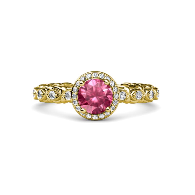 1 1/8 ct Round Pink Tourmaline and Diamond Cascading Scalloped Shank Womens Halo Engagement Ring 14K Yellow Gold More Details ...