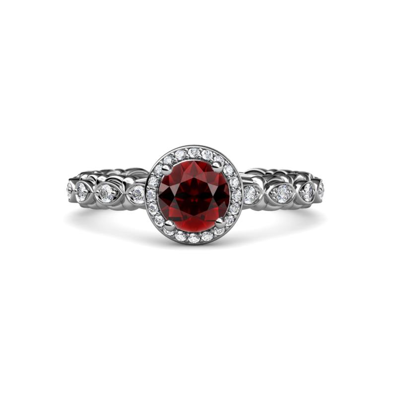 1 1/3 ct Round Red Garnet and Diamond Cascading Scalloped Shank Womens Halo Engagement Ring 14K White Gold More Details ...