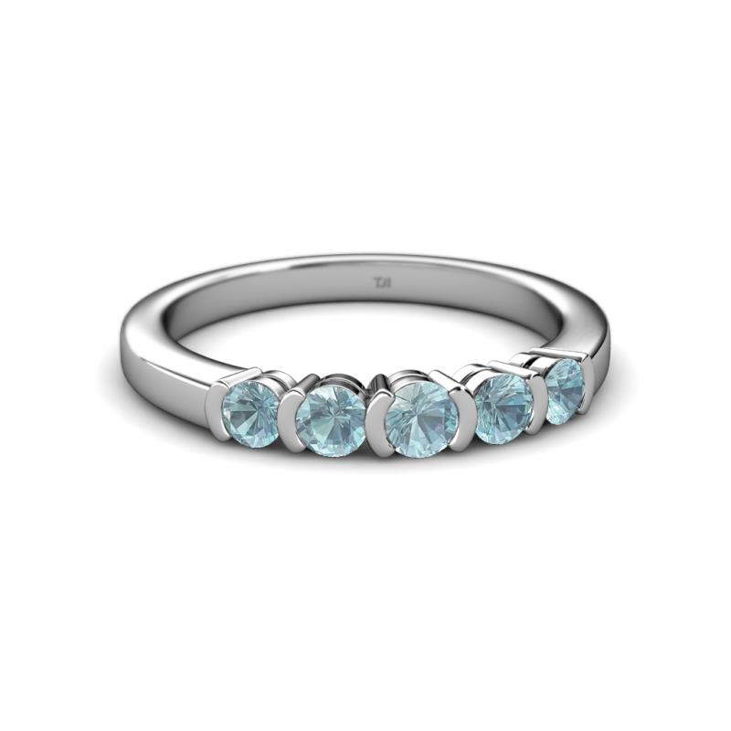 0.66 ctw Aquamarine Round 3.80 mm & 3.30 mm Half Bezel Set 5 Stone Women Wedding Band Stackable 10K White Gold More Details ...