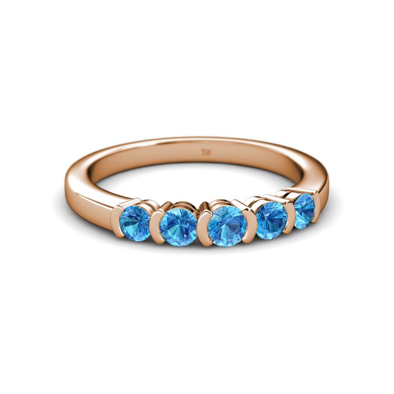 0.74 ctw Blue Topaz Round 3.80 mm & 3.30 mm Half Bezel Set 5 Stone Women Wedding Band Stackable 10K Rose Gold More Details ...