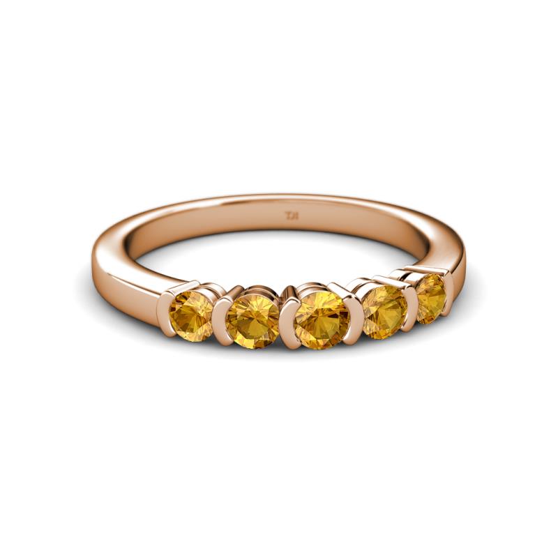 0.66 ctw Citrine Round 3.80 mm & 3.30 mm Half Bezel Set 5 Stone Women Wedding Band Stackable 10K Rose Gold More Details ...