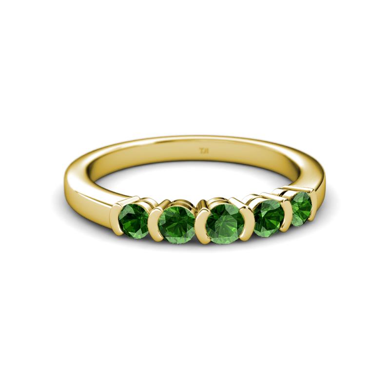 0.86 ctw Green Garnet Round 3.80 mm & 3.30 mm Half Bezel Set 5 Stone Women Wedding Band Stackable 10K Yellow Gold More Details ...