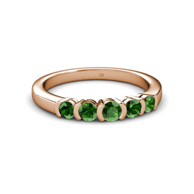 0.86 ctw Green Garnet Round 3.80 mm & 3.30 mm Half Bezel Set 5 Stone Women Wedding Band Stackable 10K Rose Gold More Details ...
