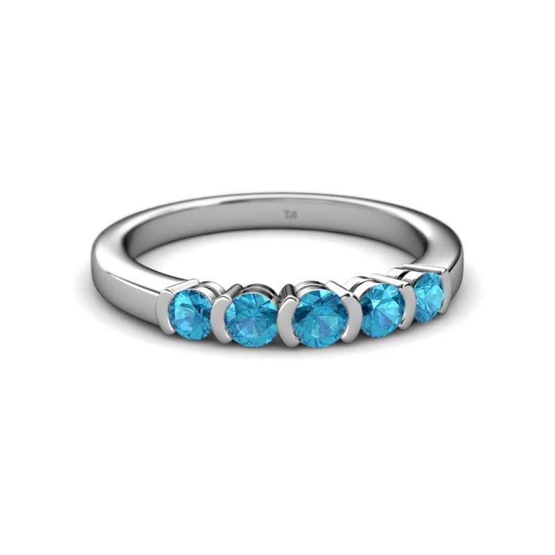 0.75 ctw London Blue Topaz Round 3.80 mm & 3.30 mm Half Bezel Set 5 Stone Women Wedding Band Stackable 10K White Gold More Details ...