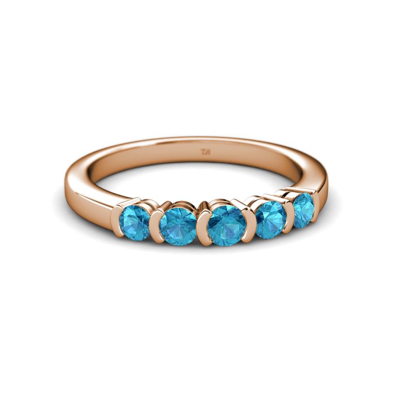 0.75 ctw London Blue Topaz Round 3.80 mm & 3.30 mm Half Bezel Set 5 Stone Women Wedding Band Stackable 10K Rose Gold More Details ...