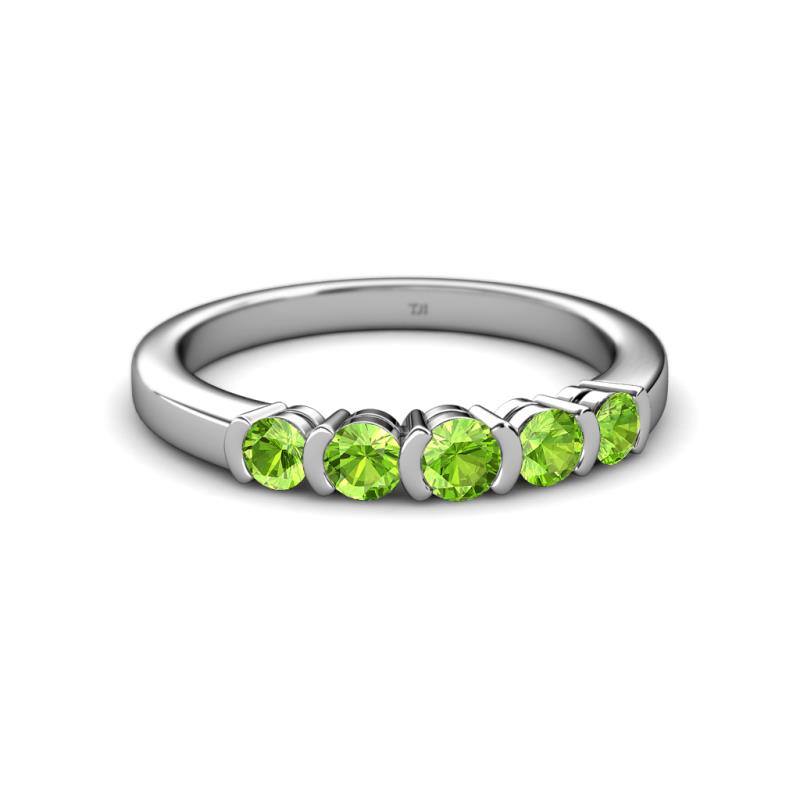 0.86 ctw Peridot Round 3.80 mm & 3.30 mm Half Bezel Set 5 Stone Women Wedding Band Stackable 18K White Gold More Details ...