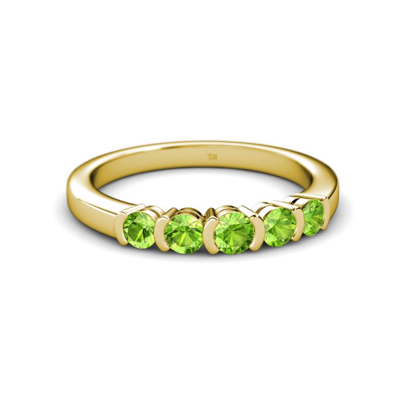 0.86 ctw Peridot Round 3.80 mm & 3.30 mm Half Bezel Set 5 Stone Women Wedding Band Stackable 10K Yellow Gold More Details ...