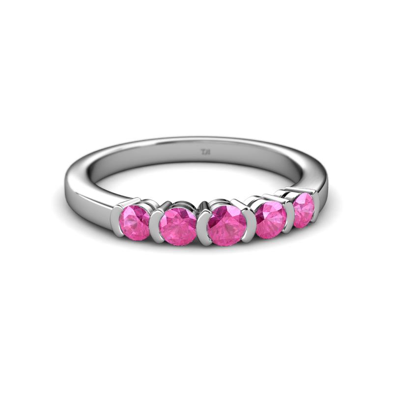0.80 ctw Pink Sapphire Round 3.80 mm & 3.30 mm Half Bezel Set 5 Stone Women Wedding Band Stackable 14K White Gold More Details ...