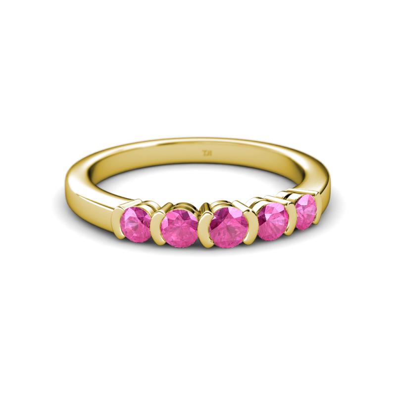 0.80 ctw Pink Sapphire Round 3.80 mm & 3.30 mm Half Bezel Set 5 Stone Women Wedding Band Stackable 14K Yellow Gold More Details ...