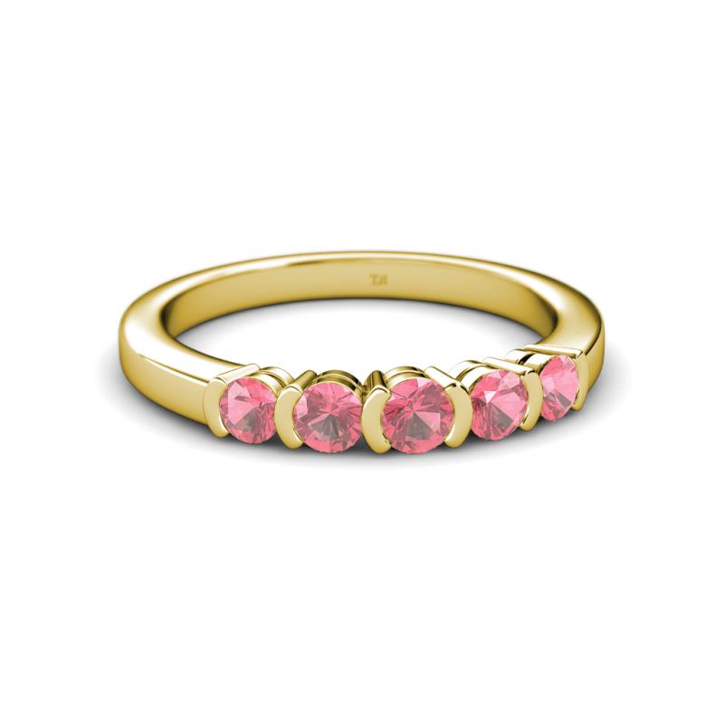 0.66 ctw Pink Tourmaline Round 3.80 mm & 3.30 mm Half Bezel Set 5 Stone Women Wedding Band Stackable 10K Yellow Gold More Details ...