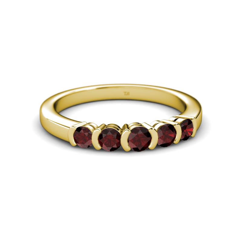 0.86 ctw Red Garnet Round 3.80 mm & 3.30 mm Half Bezel Set 5 Stone Women Wedding Band Stackable 14K Yellow Gold More Details ...