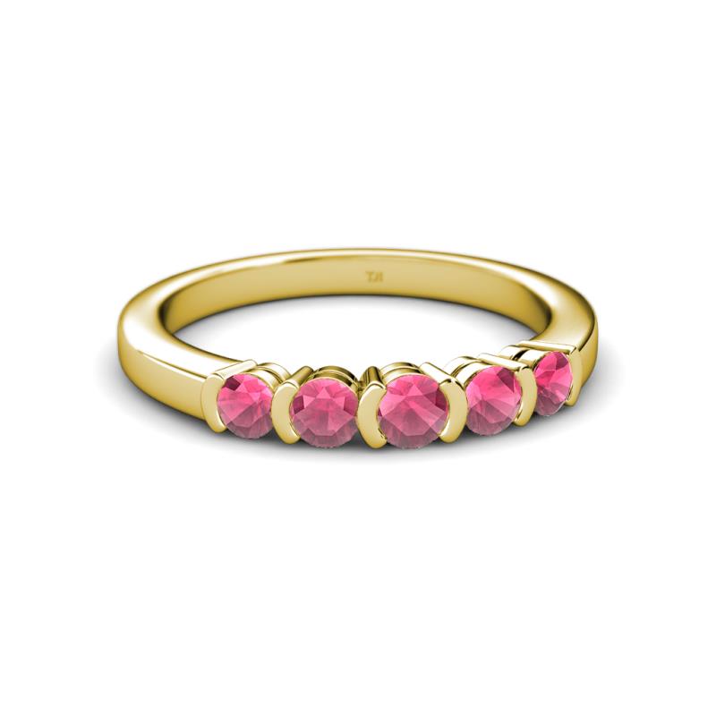 0.86 ctw Rhodolite Garnet Round 3.80 mm & 3.30 mm Half Bezel Set 5 Stone Women Wedding Band Stackable 18K Yellow Gold More Details ...