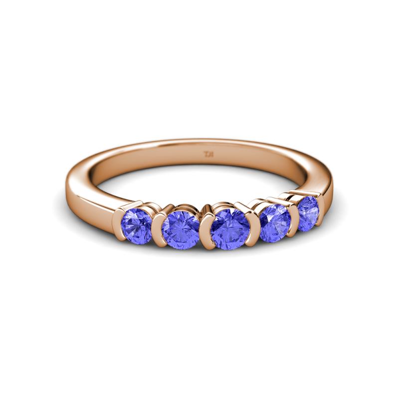 0.76 ctw Tanzanite Round 3.80 mm & 3.30 mm Half Bezel Set 5 Stone Women Wedding Band Stackable 14K Rose Gold More Details ...