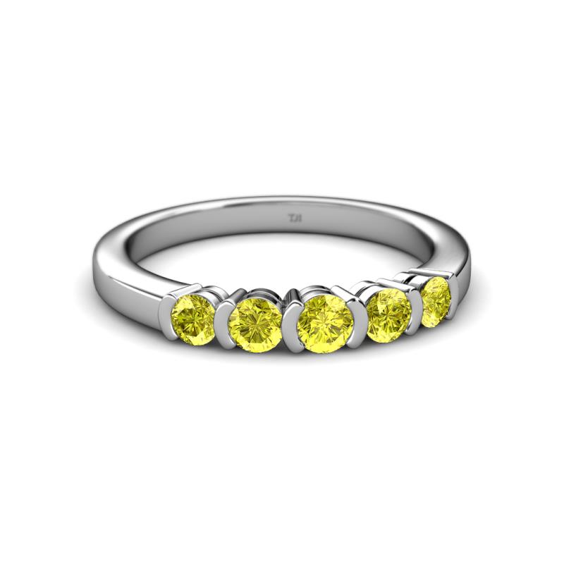 0.76 ctw Yellow Diamond Round 3.80 mm & 3.30 mm Half Bezel Set 5 Stone Women Wedding Band Stackable 10K White Gold More Details ...