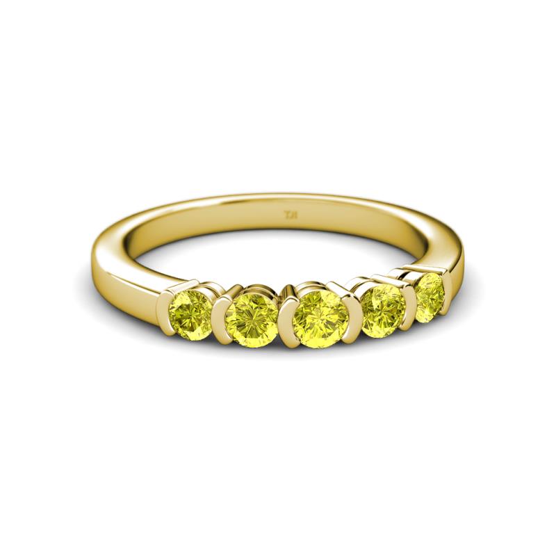 0.76 ctw Yellow Diamond Round 3.80 mm & 3.30 mm Half Bezel Set 5 Stone Women Wedding Band Stackable 10K Yellow Gold More Details ...