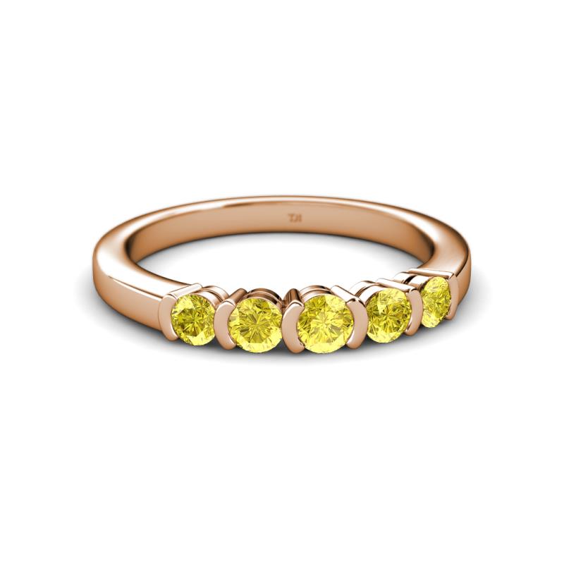0.80 ctw Yellow Sapphire Round 3.80 mm & 3.30 mm Half Bezel Set 5 Stone Women Wedding Band Stackable 18K Rose Gold More Details ...