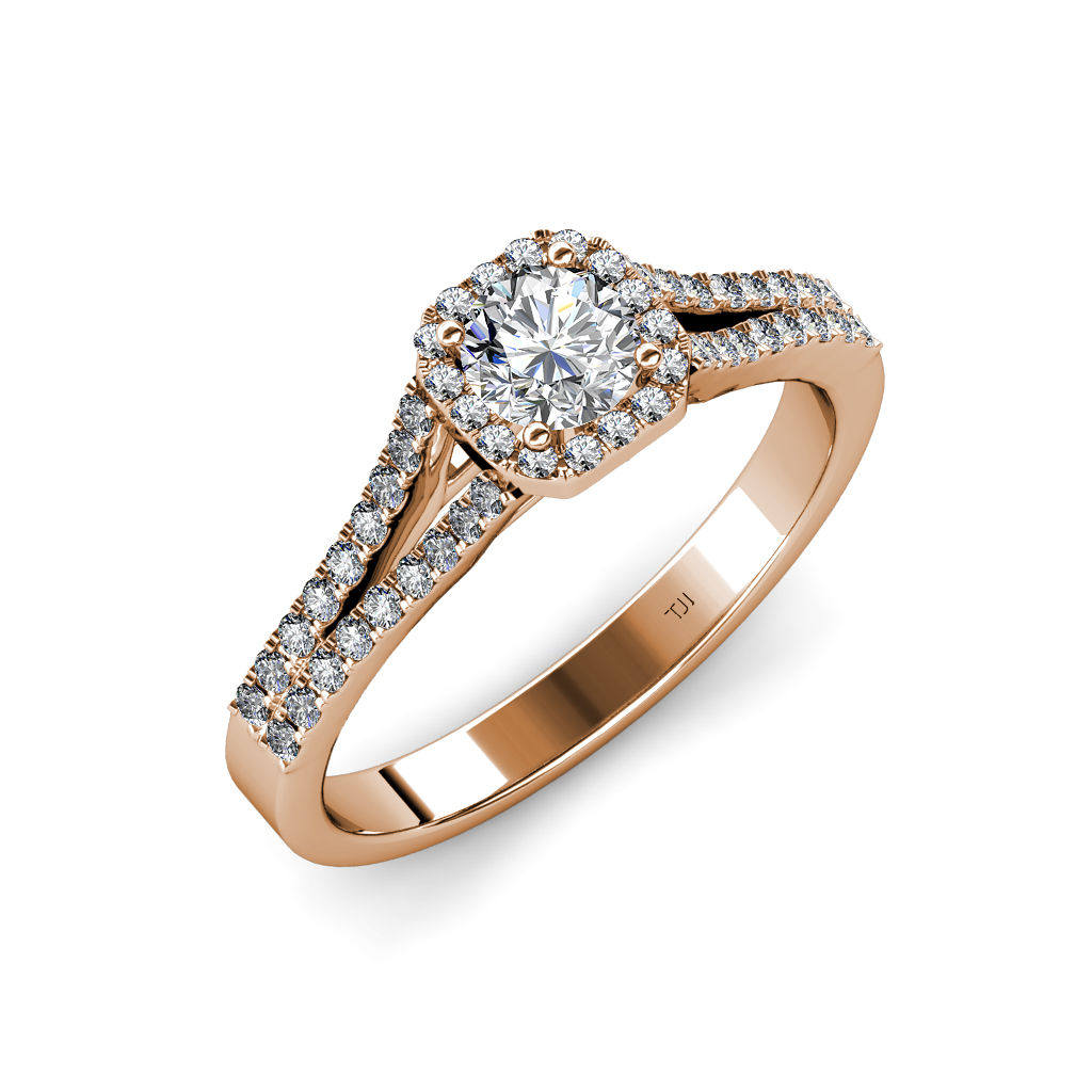 Diamond Four Prong Semi Mount Womens Halo Engagement Ring Setting 0.38 ctw 14K Rose Gold More Details ...