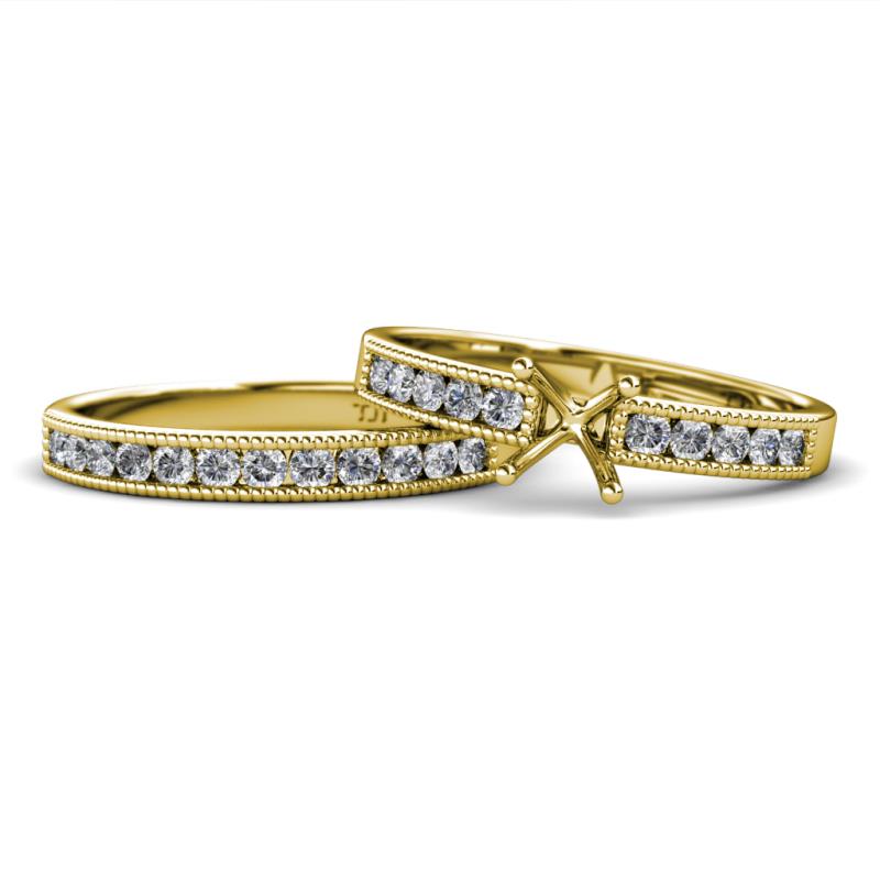 Diamond Four Prong Semi Mount Engagement Ring Setting & Matching Diamond Band with Milgrain Work 1.10 ctw 14K Yellow Gold More Details ...