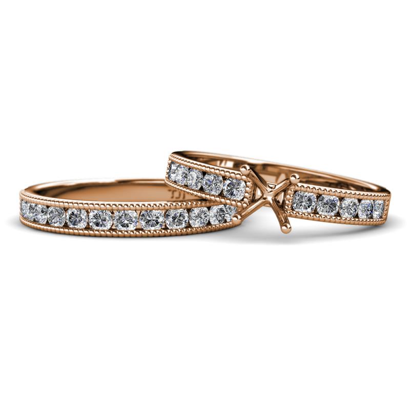 Diamond Four Prong Semi Mount Engagement Ring Setting & Matching Diamond Band with Milgrain Work 1.54 ctw 14K Rose Gold More Details ...