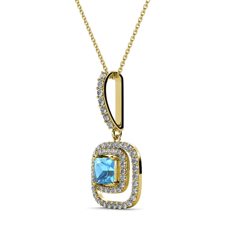 Princess Cut (4.5 mm) Blue Topaz and Diamond Womens Halo Pendant Necklace 0.68 ctw 14K Yellow Gold.Included 18 Inches 14K Yellow Gold Chain More Details ...