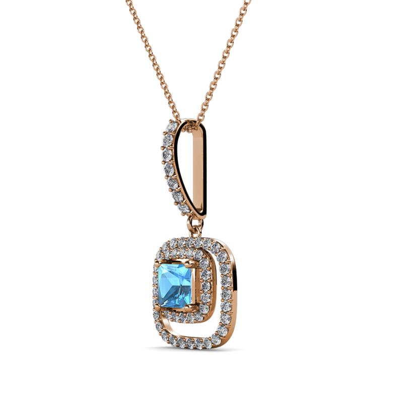 Princess Cut (4.5 mm) Blue Topaz and Diamond Womens Halo Pendant Necklace 0.68 ctw 14K Rose Gold.Included 18 Inches 14K Rose Gold Chain More Details ...