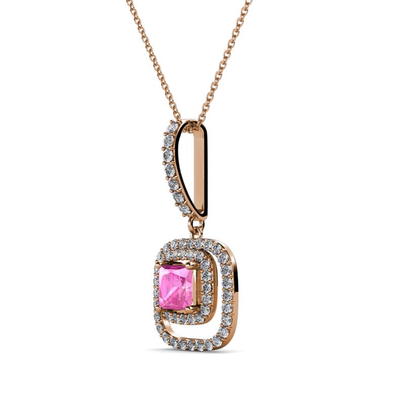 Princess Cut (4.5 mm) Pink Sapphire and Diamond Womens Halo Pendant Necklace 0.76 ctw 14K Rose Gold.Included 18 Inches 14K Rose Gold Chain More Details ...