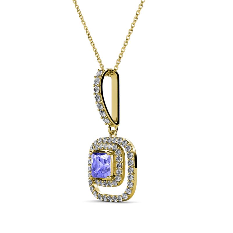 Princess Cut (4.5 mm) Tanzanite and Diamond Womens Halo Pendant Necklace 0.69 ctw 14K Yellow Gold.Included 18 Inches 14K Yellow Gold Chain More Details ...