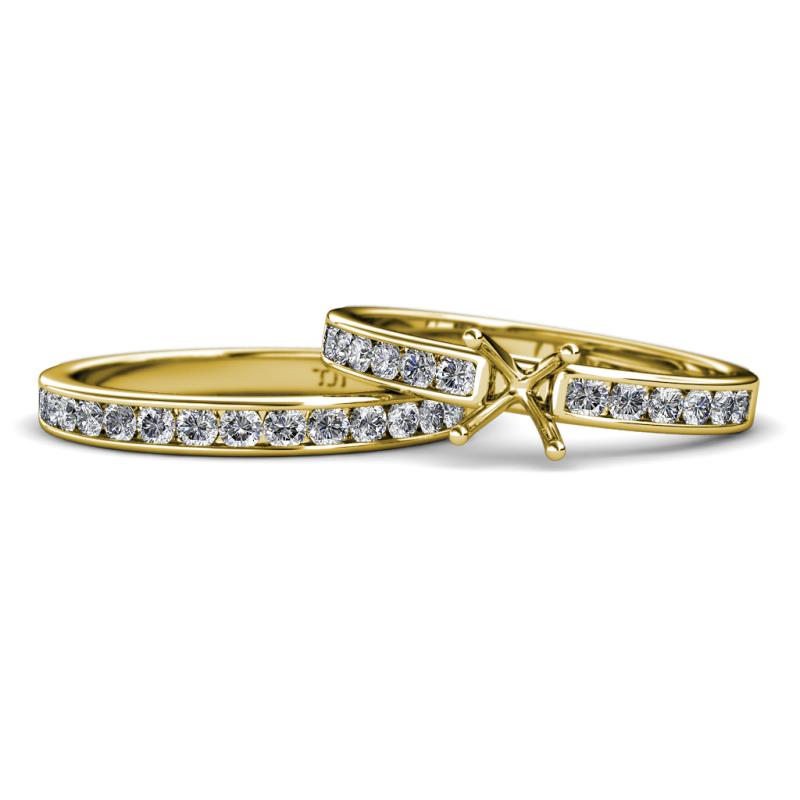 Diamond Four Prong Semi Mount Engagement Ring Setting & Matching Diamond Band 1.56 ctw 14K Yellow Gold More Details ...