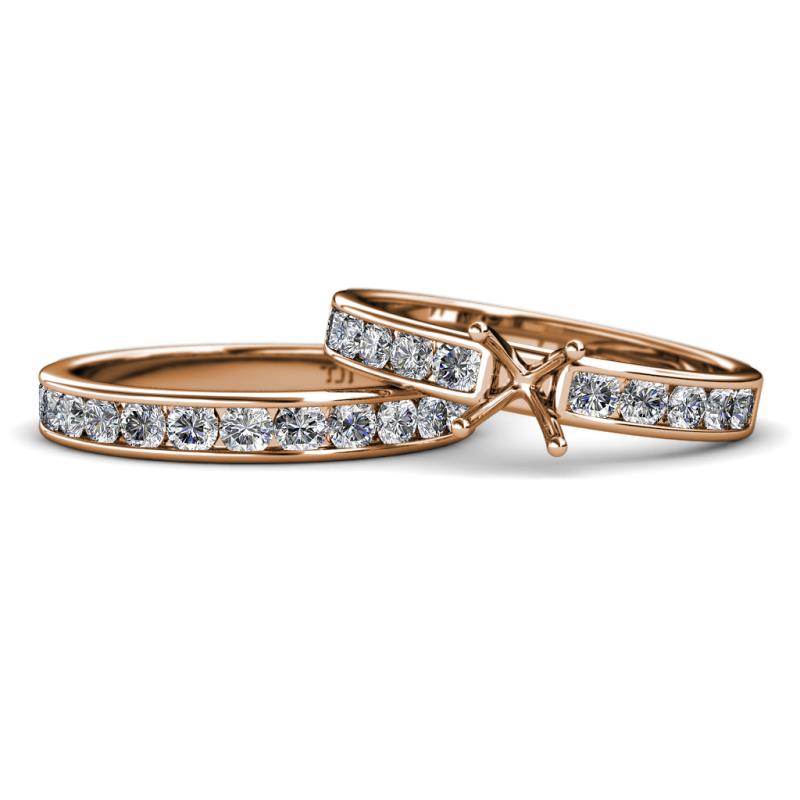 Diamond Four Prong Semi Mount Engagement Ring Setting & Matching Diamond Band 2.20 ctw 18K Rose Gold More Details ...