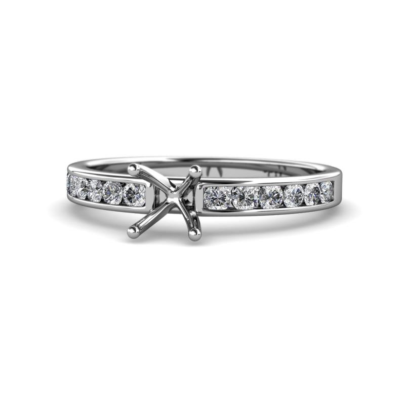 This Classic Semi Mount Engagement Ring flashes an elegant drape of Channel Set Round Diamonds half way through the shank that adds sparkle and brilliance to it.