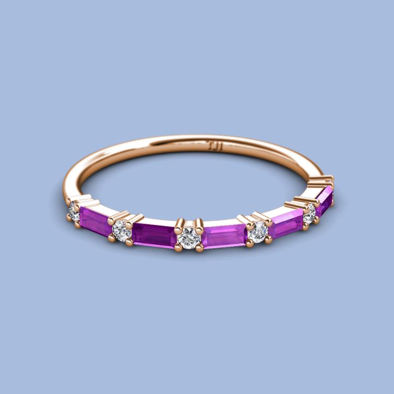 Baguette (4x2 mm) Amethyst and Round Diamond 7/8 ctw Womens Wedding Band Stackable 10K Rose Gold More Details ...
