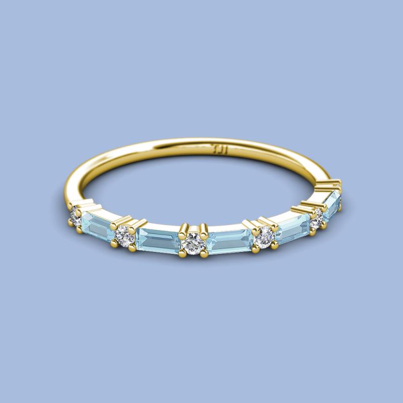 Baguette (4x2 mm) Aquamarine and Round Lab Grown Diamond 7/8 ctw Womens Wedding Band Stackable 10K Yellow Gold More Details ...
