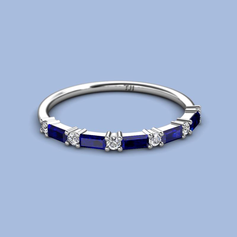 Baguette (4x2 mm) Blue Sapphire and Round Diamond 1 1/6 ctw Womens Wedding Band Stackable 10K White Gold More Details ...