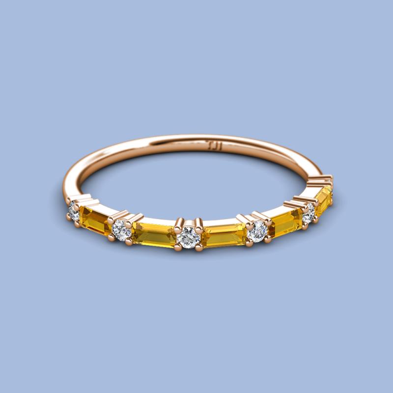 Baguette (4x2 mm) Citrine and Round Diamond 7/8 ctw Womens Wedding Band Stackable 10K Rose Gold More Details ...