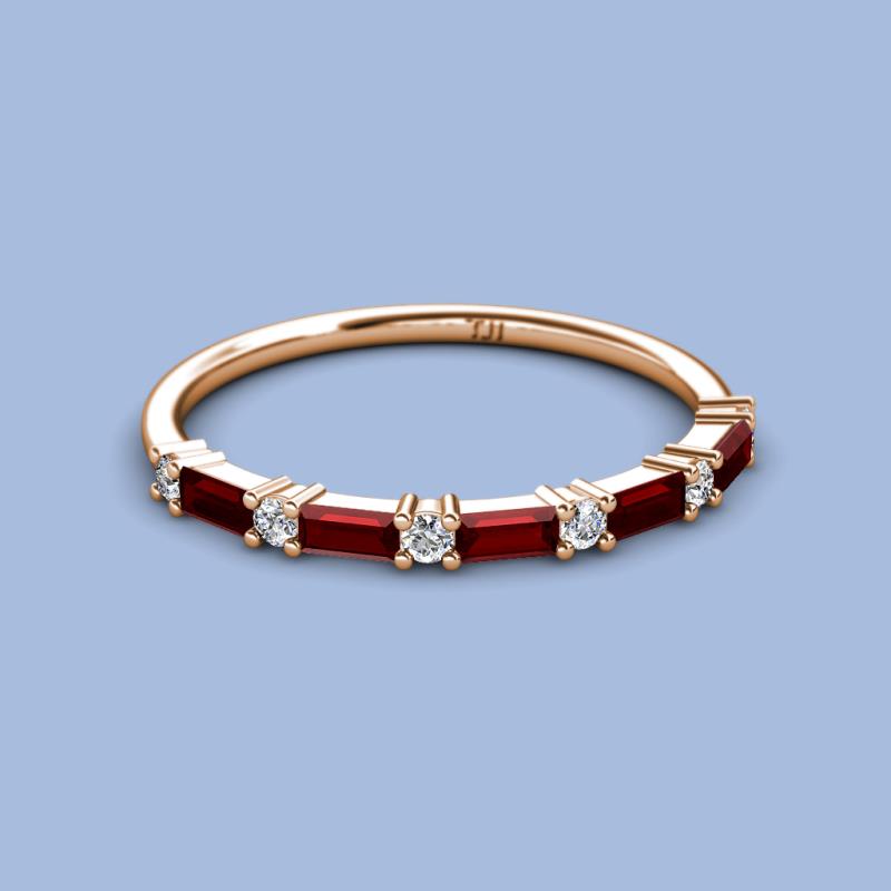 Baguette (4x2 mm) Red Garnet and Round Lab Grown Diamond 1 1/6 ctw Womens Wedding Band Stackable 10K Rose Gold More Details ...