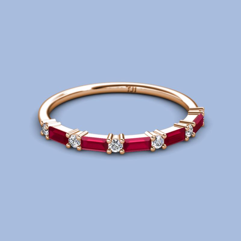 Baguette (4x2 mm) Ruby and Round Lab Grown Diamond 1 1/8 ctw Womens Wedding Band Stackable 10K Rose Gold More Details ...