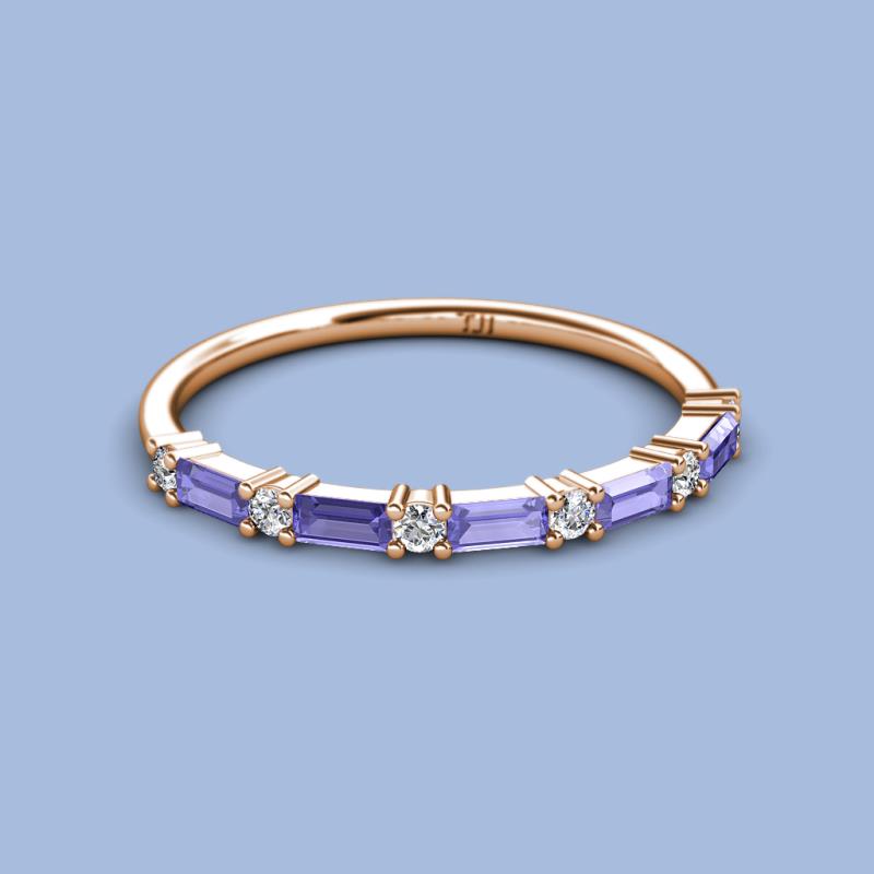 Baguette (4x2 mm) Tanzanite and Round Diamond 7/8 ctw Womens Wedding Band Stackable 10K Rose Gold More Details ...