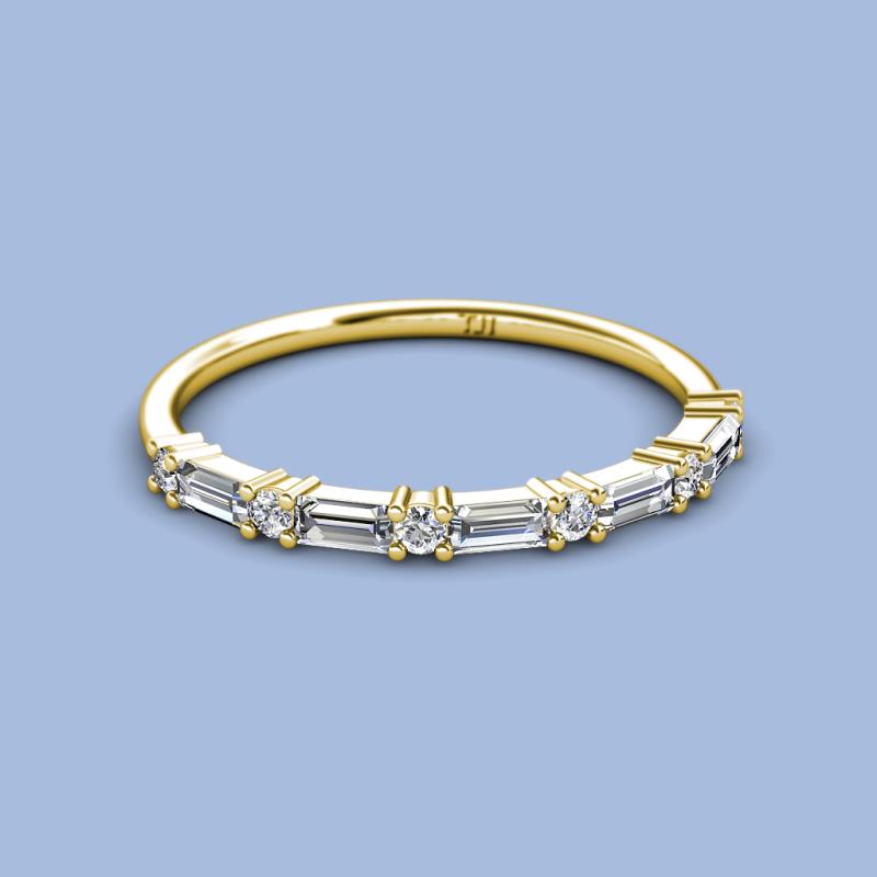 Baguette (4x2 mm) and Round Diamond 7/8 ctw Womens Wedding Band Stackable 10K Yellow Gold More Details ...
