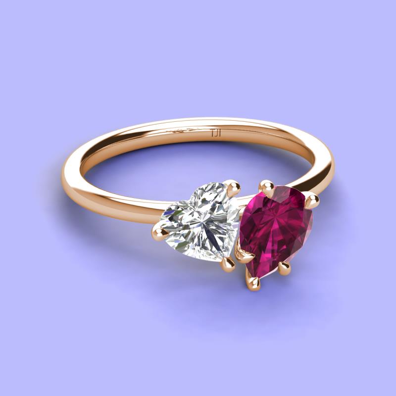 GIA Certified Heart Shape Diamond & Pear Shape Rhodolite Garnet 2.30 ctw Four Prong Womens 2 Stone Duo Engagement Ring 18K Rose Gold More Details ...