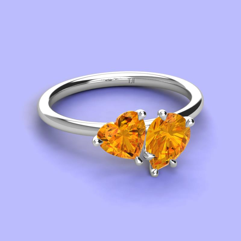 There's something so romantic, and oh-so-enchanting about this duo two stone engagement ring. This spectacular design features Heart & Pear shape Citrine that sets at slight angles towards each other.