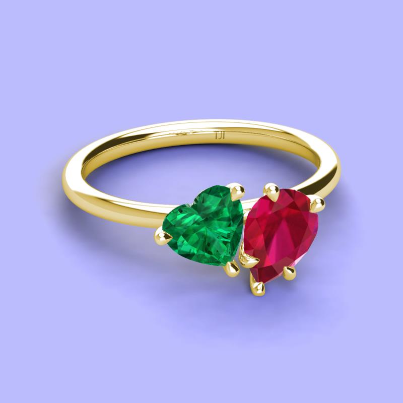 Heart & Pear Shape Lab Created Emerald & Lab Created Ruby 2.38 ctw Four Prong Womens 2 Stone Duo Engagement Ring 10K Yellow Gold More Details ...