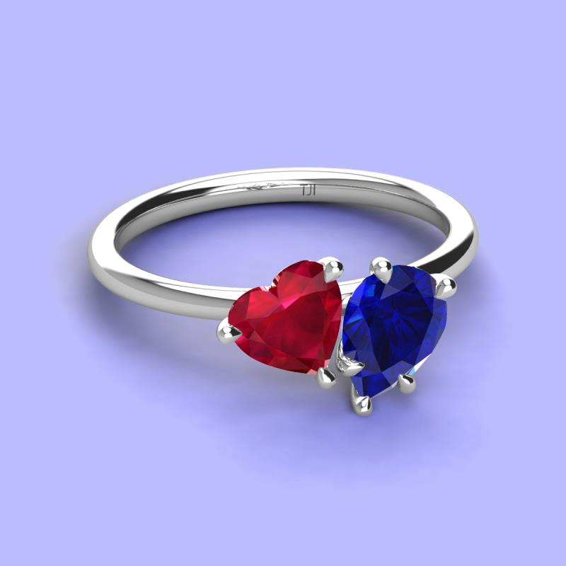 Heart & Pear Shape Lab Created Ruby & Lab Created Blue Sapphire 2.43 ctw Four Prong Womens 2 Stone Duo Engagement Ring Platinum More Details ...