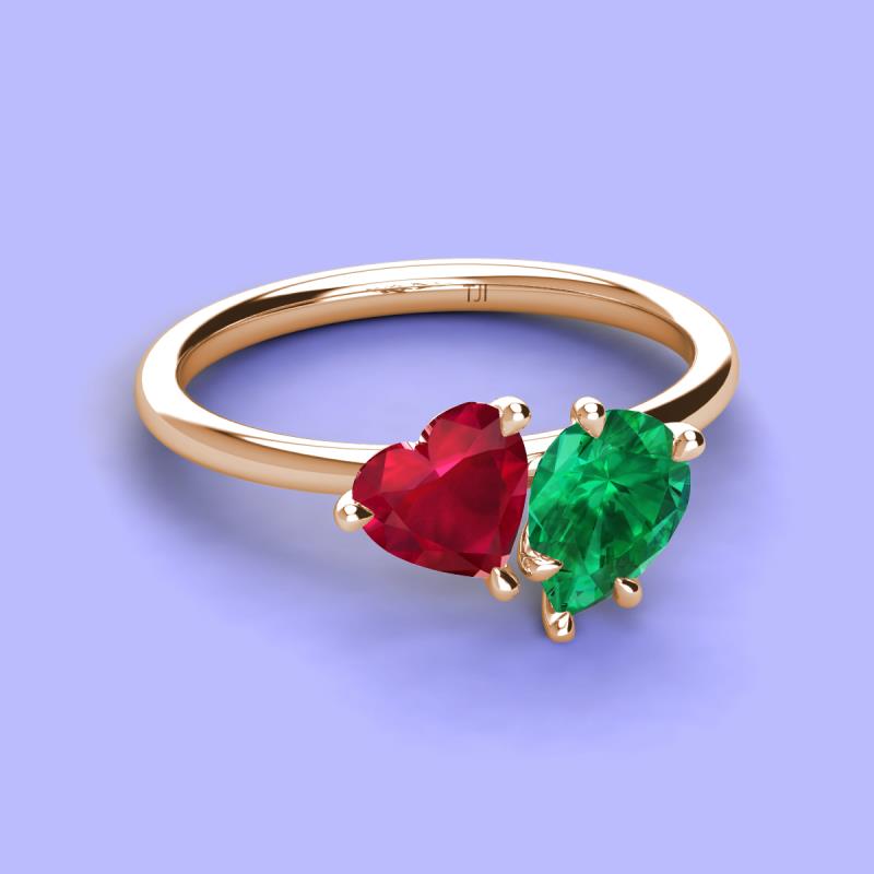 Heart & Pear Shape Lab Created Ruby & Lab Created Emerald 1.90 ctw Four Prong Womens 2 Stone Duo Engagement Ring 18K Rose Gold More Details ...