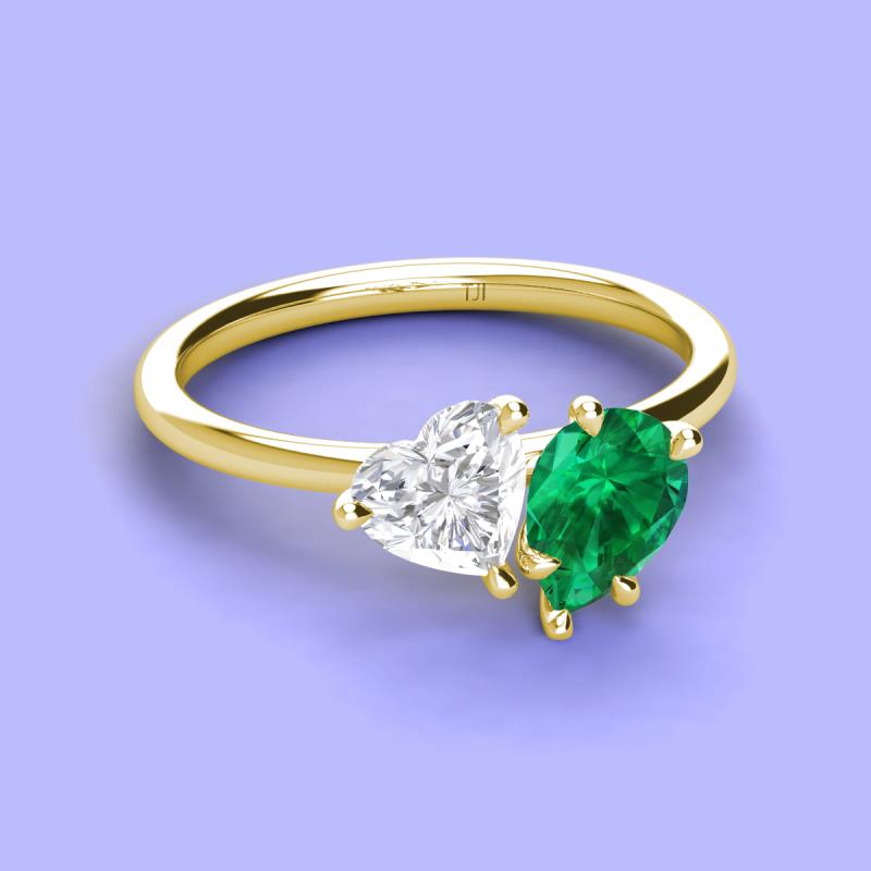 Heart & Pear Shape Lab Created White Sapphire & Lab Created Emerald 2.00 ctw Four Prong Womens 2 Stone Duo Engagement Ring 10K Yellow Gold More Details ...